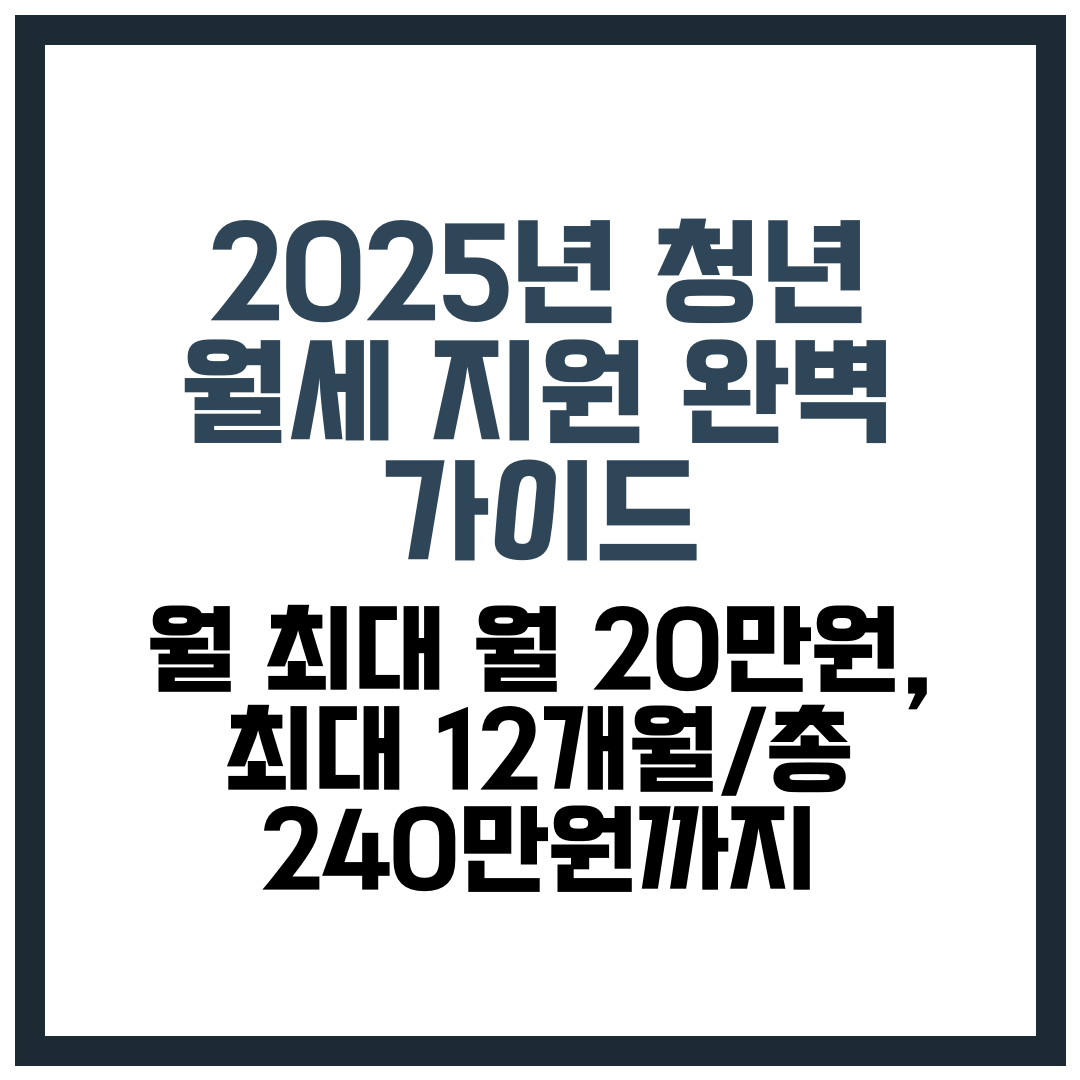 2025년 청년 월세 지원은 최대 240만원의 주거비 지원으로 청년들의 생활 안정에 큰 도움이 될 수 있는 제도입니다.