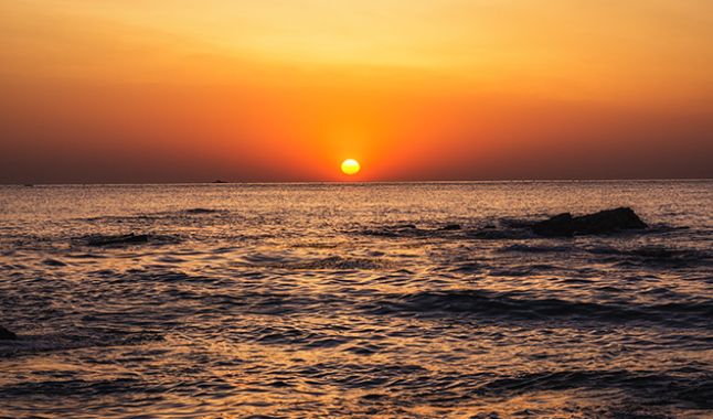 - 파도 + 태양 구도는 망원보다 표준 렌즈가 유리합니다.