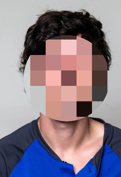 아래사진을 보시면, 얼굴은 정면을 향하고, 표정은 자연스럽게 웃는 남자의 얼굴입니다.(초상권문제로 모자이크 하였습니다.)