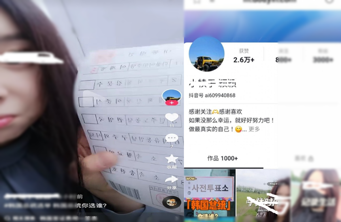 이 이미지는 한 여성이 한국 대통령 선거의 사전 투표용지를 들고 SNS에 업로드한 사진인데요. 해당인물의 외모나 영상의 자막, 댓글, 여성이 이용한 어플은 중국 휴대폰 인증 해야 사용이 가능하다는 등의 근거로 "중국인"이라는 주장이 제기되고 있는 거 같습니다.