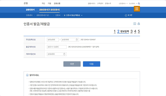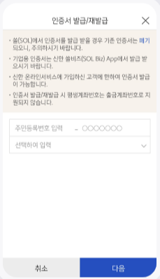 ② [공동인증서 발급] 또는 [가져오기] 선택 후 개인정보를 입력하세요