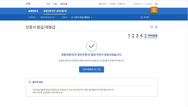 ④ 공동인증서 발급이 완료되었습니다.