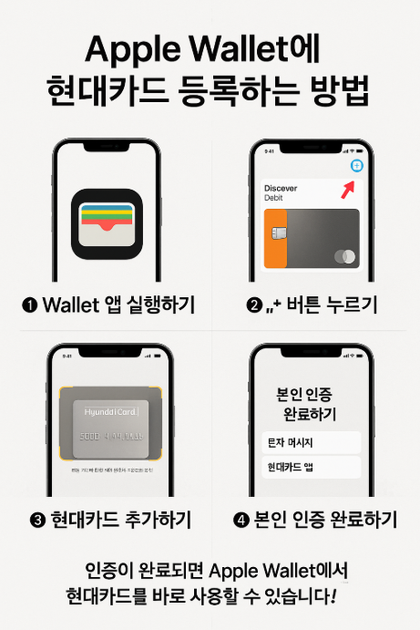 그렇다면, 이미 애플페이를 지원 중인 현대카드는 어떤가요? 현대카드는 2023년부터 국내 카드사 최초로 애플페이를 도입하며 아이폰 사용자들의 큰 호응을 받았습니다. 애플페이를 사용하면 아이폰 또는 애플워치로 실물 카드 없이 결제할 수 있어, 편의성과 보안성 모두를 잡은 결제 수단으로 주목받고 있습니다. 🔐