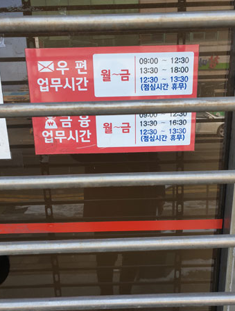 저도 최근에 점심시간일 줄 모르고 우체국에 방문했다가 문이 닫혀 있는 걸 보고, 아무것도 못하고 돌아왔던 기억이 있습니다.